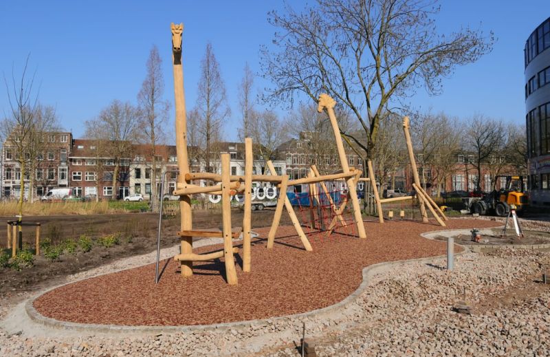 Inmiddels is het terrein voorbereid en zijn de groenvakken aangelegd en begint het park al echt vorm te krijgen. Op dit moment werken we aan de beplanting, het inzaaien van de grasvelden en de aanleg van boomvakken. De speeltuin, speciaal ontworpen door Boerplay, is een prachtige toevoeging.