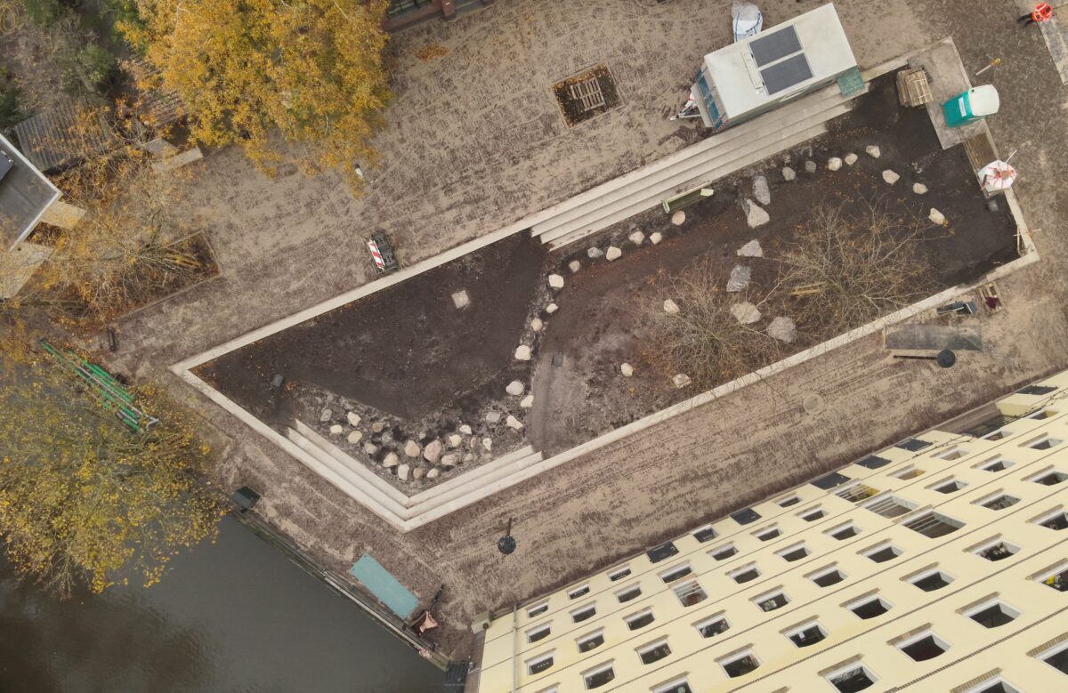 In december is een groot deel van de beplanting in de grond gezet waarvan ook de 2 bomen.